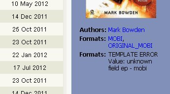Judging from your attached image, you created a custom column with the title Formats. That would be the column where your invalid template is located. The name directly next to the Template Error is a clue (see attached I circled it in red so you won't miss it.) The template for the custom column called Formats, by default creation, looks like the attached (again circled in red for your convenience.) I'm guessing your template is messed up. Either fix the template or go to Preferences - Add your own columns and delete the custom column (see attached). Alternatively if you don't want to deal with the complication of fixing the template or deleting the custom column you can go to Preferences - Look and Feel - Book Details tab and uncheck the second Formats you find in the list (see attached, labeled and circled in red to remove all doubt.) Good Luck! Last edited by DoctorOhh; 08-01-2012 at 04:51 AM. |