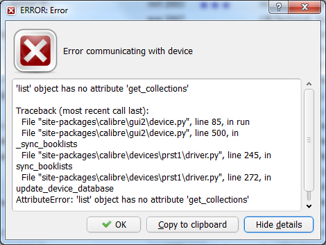 But, I kept a copy to see what the difference was. Looking at it, I saw that I had added a new column today. As it was an experimental column to see one of the other changes on 0.9.16, I removed the column. When I connected the device again, I was back to nothing showing on the device. I have now done that a couple of times with different column types, and each time it's the same: Add or remove a column and the next time I connect my devices, it doesn't show any books on the device. |