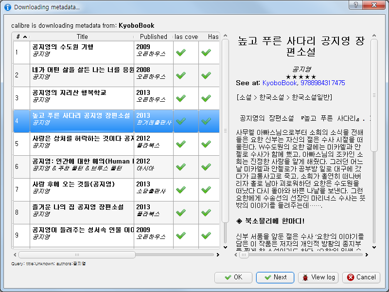 It allows Calibre to read book information from kyobobook.co.kr when you choose to download/fetch metadata. It was based on the 'Goodreads' and the 'Barnes' by 'Grant Drake'. Main Features