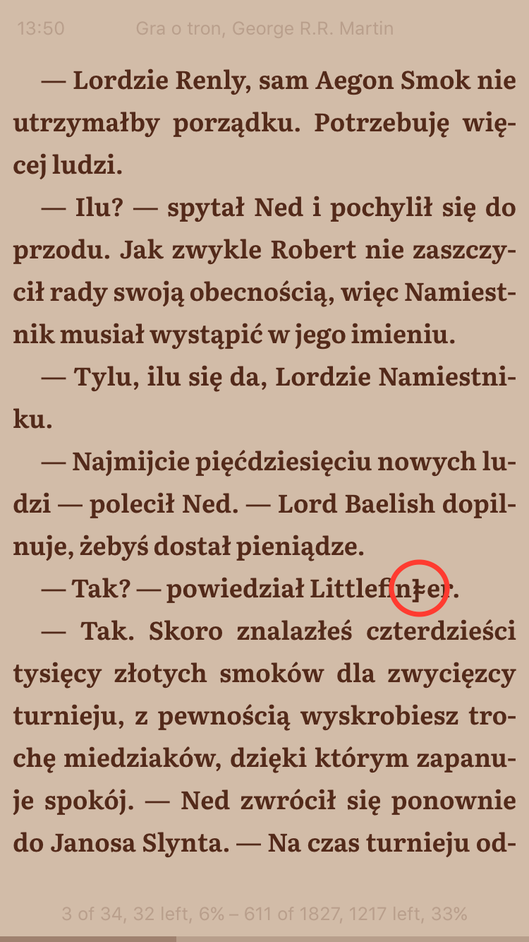 Another probably SHY related bug. Check attached screenshots. The problem is visible with Bitter font and sideloaded Literata font.