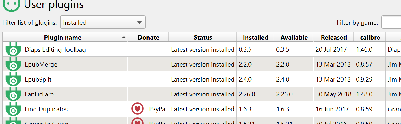 1) Do I need to uninstall and reinstall each of my 25 plugins? 2) Is there anyway to uninstall all of them at one time? 3) Also, does Calibre need to be restarted after each individual plugin is reinstalled, ie restart Calibre 25 times? [NOTE: I tried uninstall/reinstall/restart with a couple of plugins and the icons still don't show in the Toolbar.] Last edited by meghane_e; 06-22-2018 at 01:21 PM. |