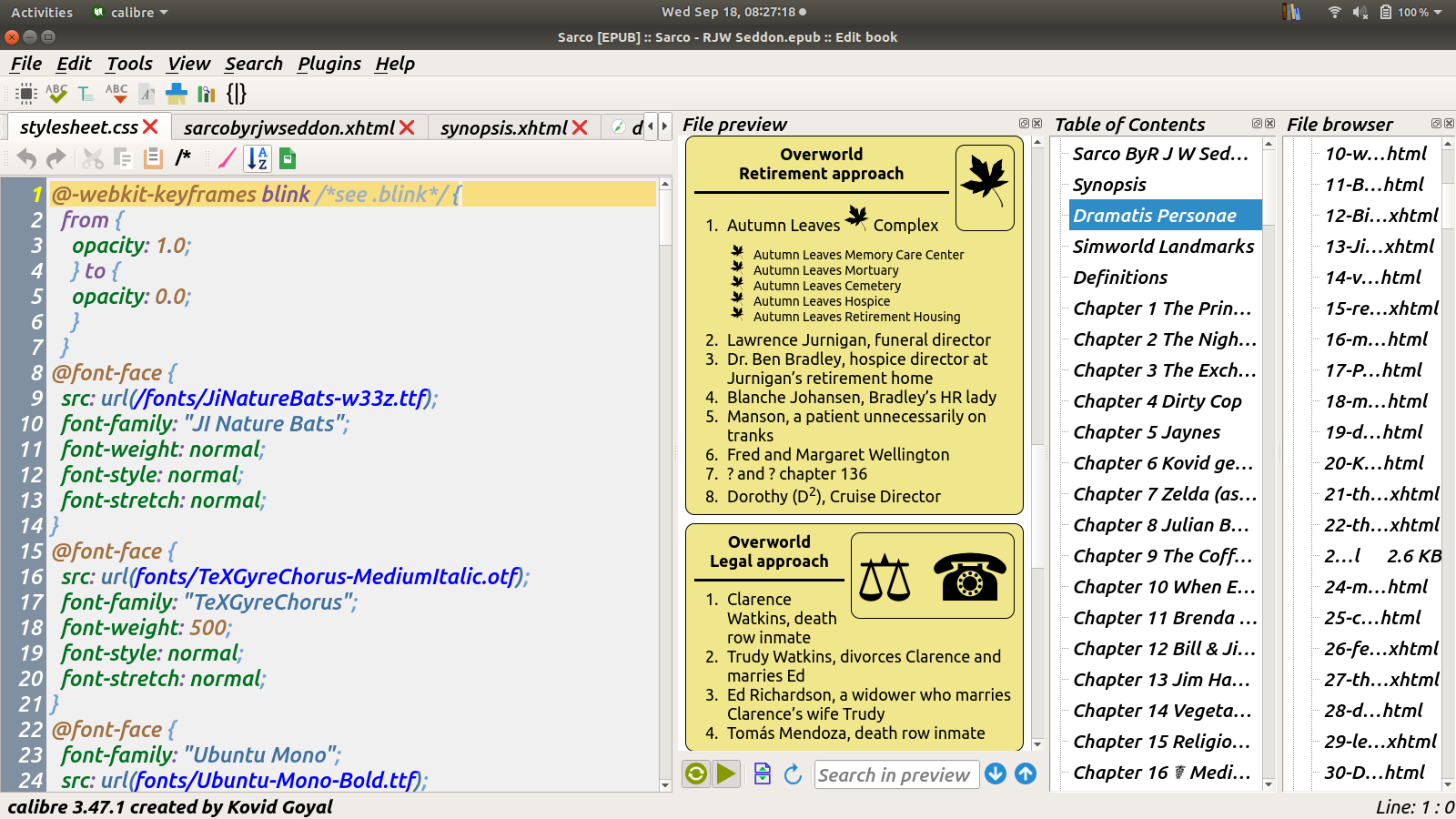 --unstack selectors so Calibre "Remove unused rules" tool can be used: Search: ([.]?[^ ]+),\s([^{]+)(\{[^}]+\}) Replace: \1 \3\n\n\2\3 'Replace All' until 0 returns. Clean CSS, then restack or replace class selectors. Apply early in edit session. |