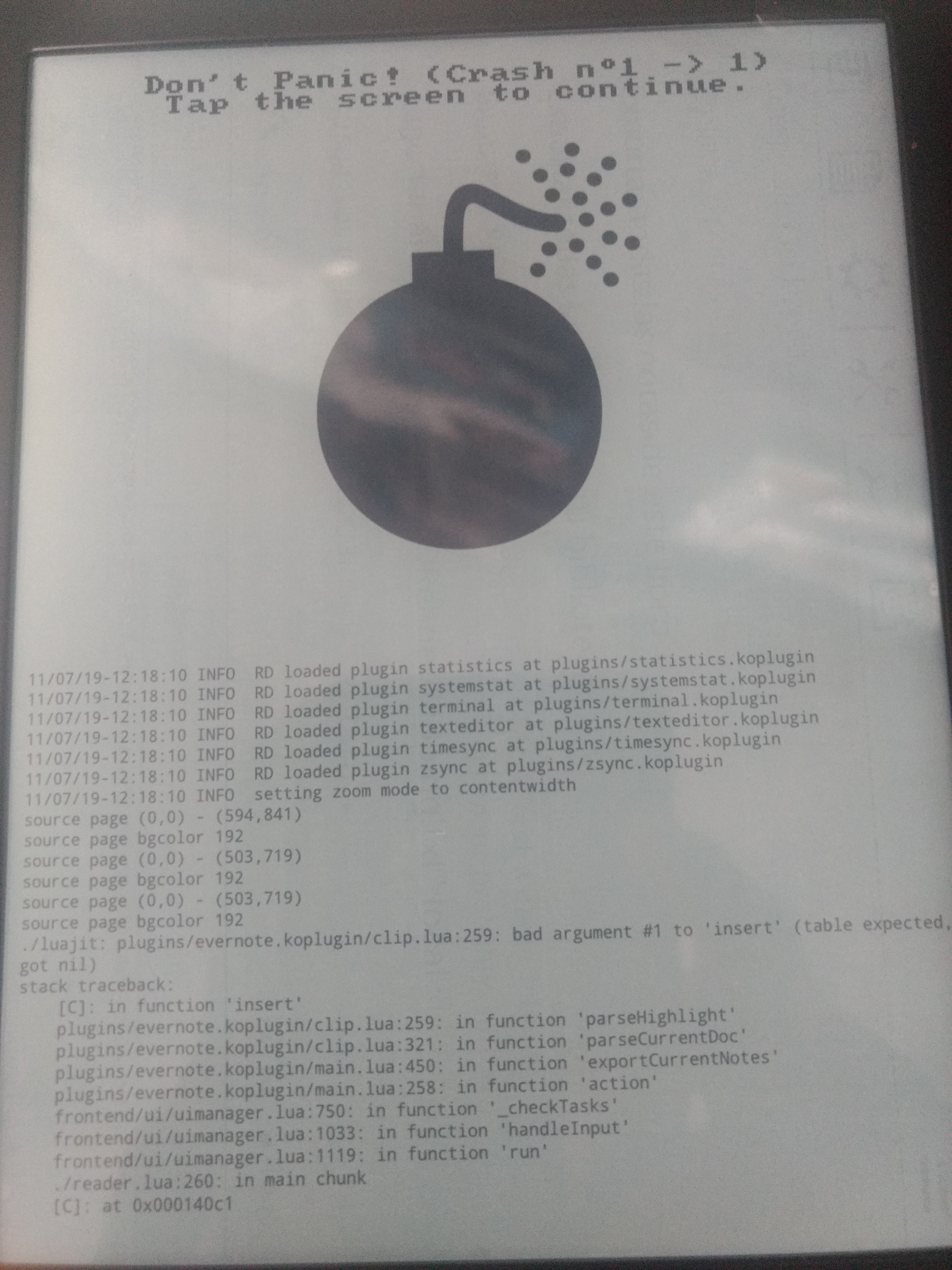 Koreader crashes when trying to export to Evernote