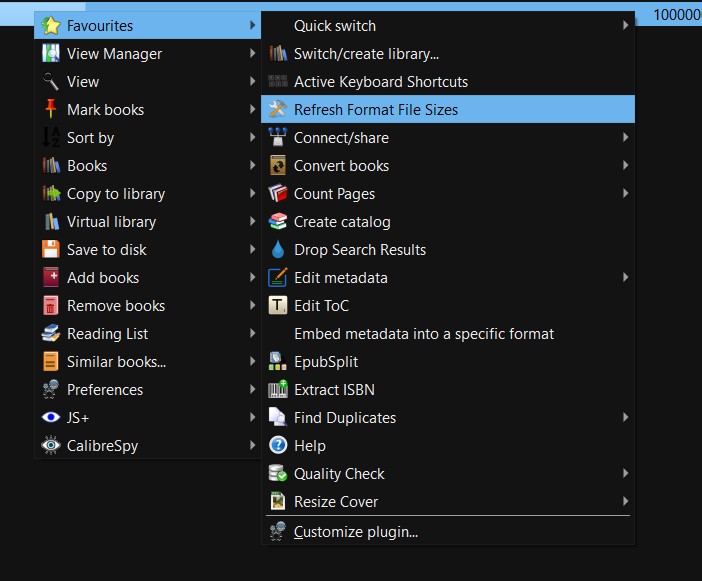 Is there a way to force the "Size (MB)" column to recalculate? After resizing covers and polishing with compression turned on, the actual file size of an epub is less... but the "Size (MB)" column remains the same as it was upon import (whether from epub or when converted).