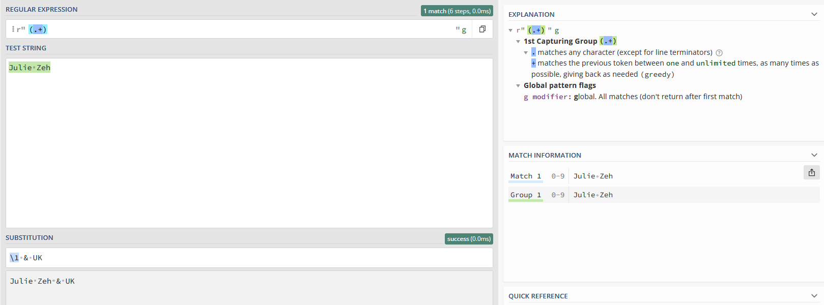 At a guess, it's returning 'UKUK' because it sees the 'real string' and an 'empty string' (perhaps picking up the start or end of the string as a matching substring). When you have '.+' it can't match the empty string, so you get only a single 'UK'. Still, when using regex to append or prepend a string to a field like this, I prefer to use the string-start and string-end special characters ('^' and '$' respectively) or to explicitly replace the entire thing, which looks like Search: ^(.*)$ Replace: \1 UK The search here says 'replace all characters' -- '(.*)' alone says 'replace any string of 0 or more characters, '^(.*)$' says 'replace the entire string' -- with 'those characters + " UK"'. |