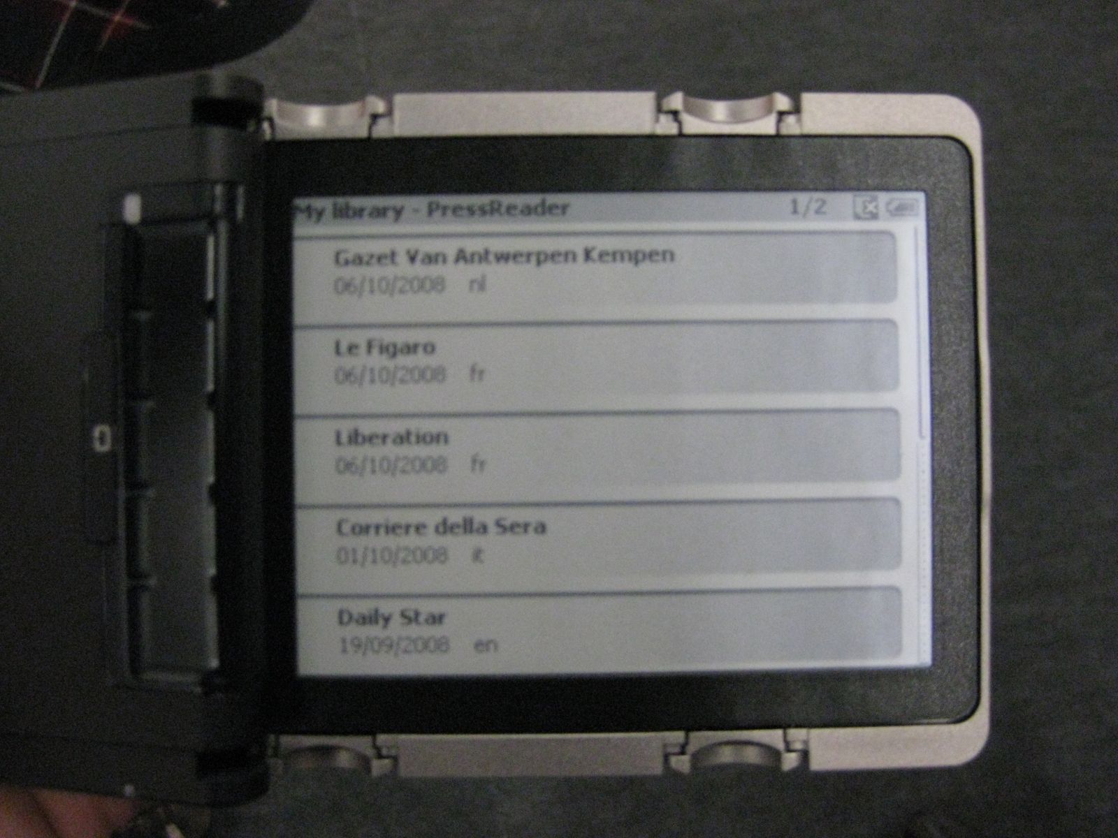 I completely forgot to upload these, but I have a couple of photos I made of the Readius during the Frankfurter Buchmesse exhibit last October. I had a chat with Polymer Vision CTO Dr. Edzer Huitema, who is the kind of guy you'd like to have a beer with. Between gulps, he will impart the details of how flexible e-paper really works. And if you order another, he'll give you a hint or two of what we can expect from his company in near future. At the time of the meeting, PV was still working on some finishing touches on the Readius, in particular in regard to the software and UI design. From what I've seen, the newspaper display looks quite compelling; it allows you to see the newspaper in layout mode and then, if you wish, to zoom into the articles. The articles are presented in reflowable text mode. Well, it's wasn't perfect yet, as you can see in one of the photos, the software appeared to have some issues with displaying unicode characters. What really does work well is the folding of the display. I admit I was nervous the first time Edzer handed me the device and asked me to open and close it. It takes some adjusting to fold a display if you are like me used to handle your precious e-book reader with utmost care. ![]() PS: The last photo is not really related.