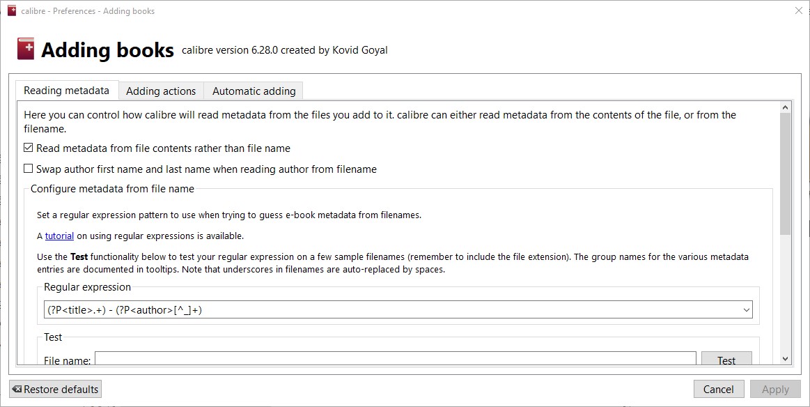 Is read metadata from file contents ticked? It may be that the book is coded WRONG |