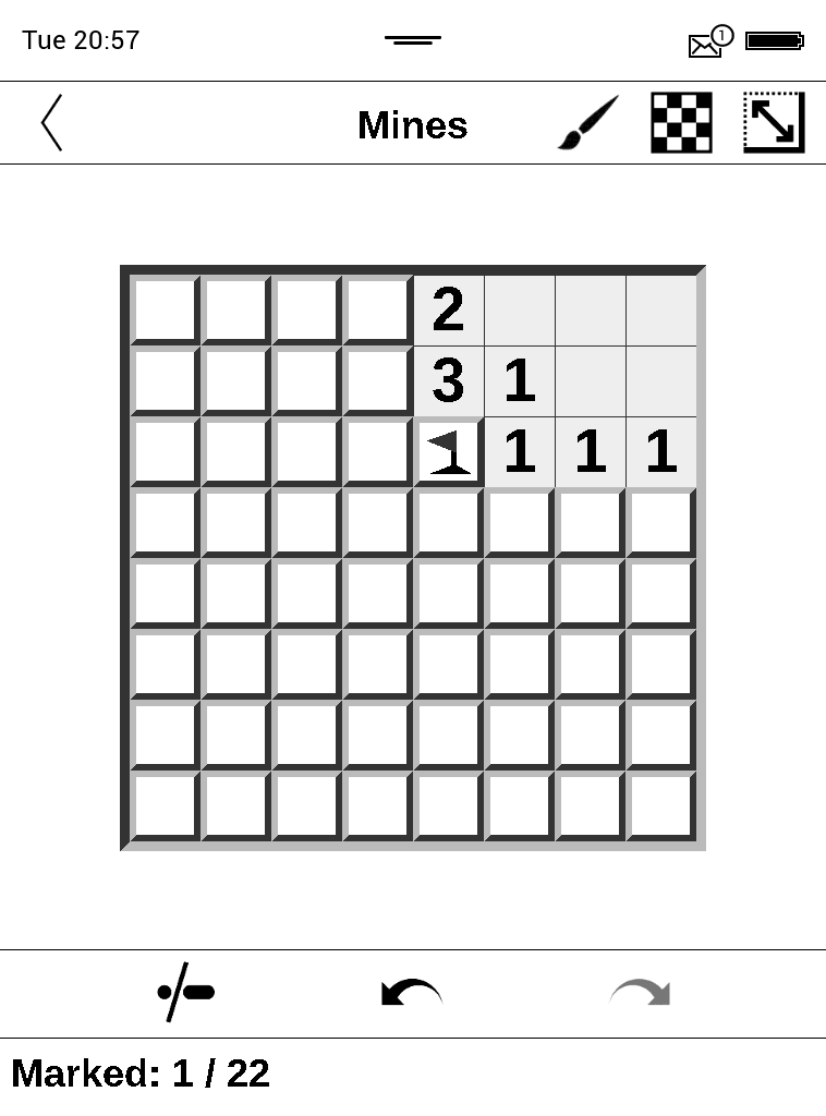 I converted all colors in the games to greyscale, focusing that it looks good with highest possible contrast on the eInk screen. I have planned for the far future to include a setting to switch between greyscale and color. I'm especially glad that it works on the InkPad X, as this device has a higher screen resolution than my Touch HD 3. I was concerned about scaling of the screen layout, button sizes, etc. In case it is not too much effort, could you make a screenshot of a game screen on the InkPad X and post it here? It would help me to check if screen coordinates are converted correctly. |