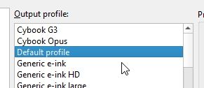 Is it possible to set the default "Output Profile" when converting a book to PDF format?