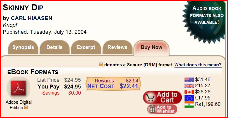 http://www.booksonboard.com/index.ph...76884&v=buynow http://www.diesel-ebooks.com/cgi-bin...Dip-eBook.html http://ebooks.ebookmall.com/ebook/135627-ebook.htm Also.. http://www.fictionwise.com/ebooks/b2...-Hiaasen/?si=0 Last edited by dreams; 07-10-2009 at 10:54 PM. Reason: pronoun clarification |