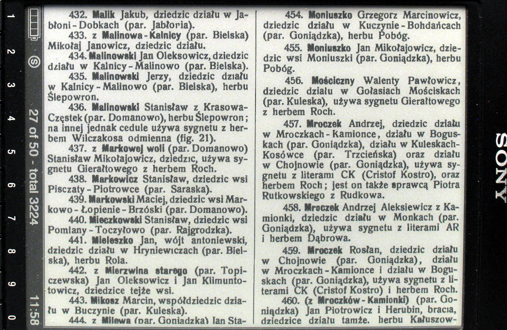 The first picture attached shows a Polish dLibra book page refined with pdflrf, displayed on a Sony Reader screen. The second picture shows the OCR results of the same photo. Not all the words are recognized properly. After all e-ink is not a paper book.
