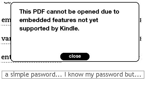 I wonder, is it really a new Kindle model DX graphite, is it misleading to indicate that data on the invoice-order, and in the web shop title, and after, then, limit the options?, when do they think updating the DX version graphite, which has a similar hardware to K3, +50 % high contrast, 4 GB, cpu, etc ...?Do you have a similar problem?, I will refer to you to ask for service-support-of-Amazon, if your invoice order buy indicates "Last Generation", and your model ~ Are after July 7), it is logical that pdf has the same characteristics that the smallest model, the K3, because have similar hardware ... It is possible that "many" request improvements in the firmware / bios, Amazon thinks implement, (come on Amazon, ipad can read that files ¡, i like more read on Kindle, but... see to see... )I think these are great features, very necessary in a large-format Kindle ... that is much more logical to read a technical pdf, password protect it, or simply make notes and Dictionary searches in this size device ... for school, work, or documents already created in the past... Quote: