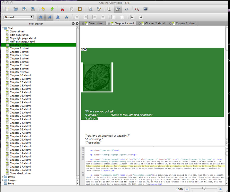Perhaps someone here has had a similar issue. I am exporting to ePub from Indesign CS4. When I open the file in Sigil the text is invisible in Book View. The text is there in the code, and the images (there are two) are visible but I am unable to see the text in Book Biew. I've tried various changes in the CSS: using the hex value and "black" to replace the rgb values that Indesign defaulted to. I've changed the fonts to basic serif instead of New Times Roman and I've tried other font families. And when viewed with an ebook reader (other than Sigil) they are visible (see image attachment). Could this be a platform issue? I'm running Mac/Intel Snow Leopard 10.6.5. This has been an issue for me for 2 months now and i keep coming back to it and trying different things. This is an update of a client's book (see attachment) that gave me no problem when using Sigil to edit last spring, but when i updated to the latest version of Sigil in September this is what is happening. I've also tried using different fonts prior to exporting from InDesign. This current version uses Times New Roman. I was using Adobe Garamond originally (which InDesign would warn me that it wasn't embedding) and with that font the italics would show up in Sigil's Book View but the regular text would disappear. When trying out different things with the Adobe Garamond I found that in the CSS if i substituted a generic serif instead of specifiying a font family the regular text would appear but the italics would disappear. But even this doesn't work with the Times New Roman (which i got no warning about not embedding). I'm stumped. If anyone has an idea i'm all ears. It's probably something stupid but at this point i can't see it.