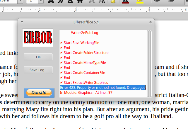 Wow. Thanks so much, Luke. Installed Draw and that did it. And I just ran my first .epub from an .odt and was very impressed. Thanks so much for this wonderful tool!