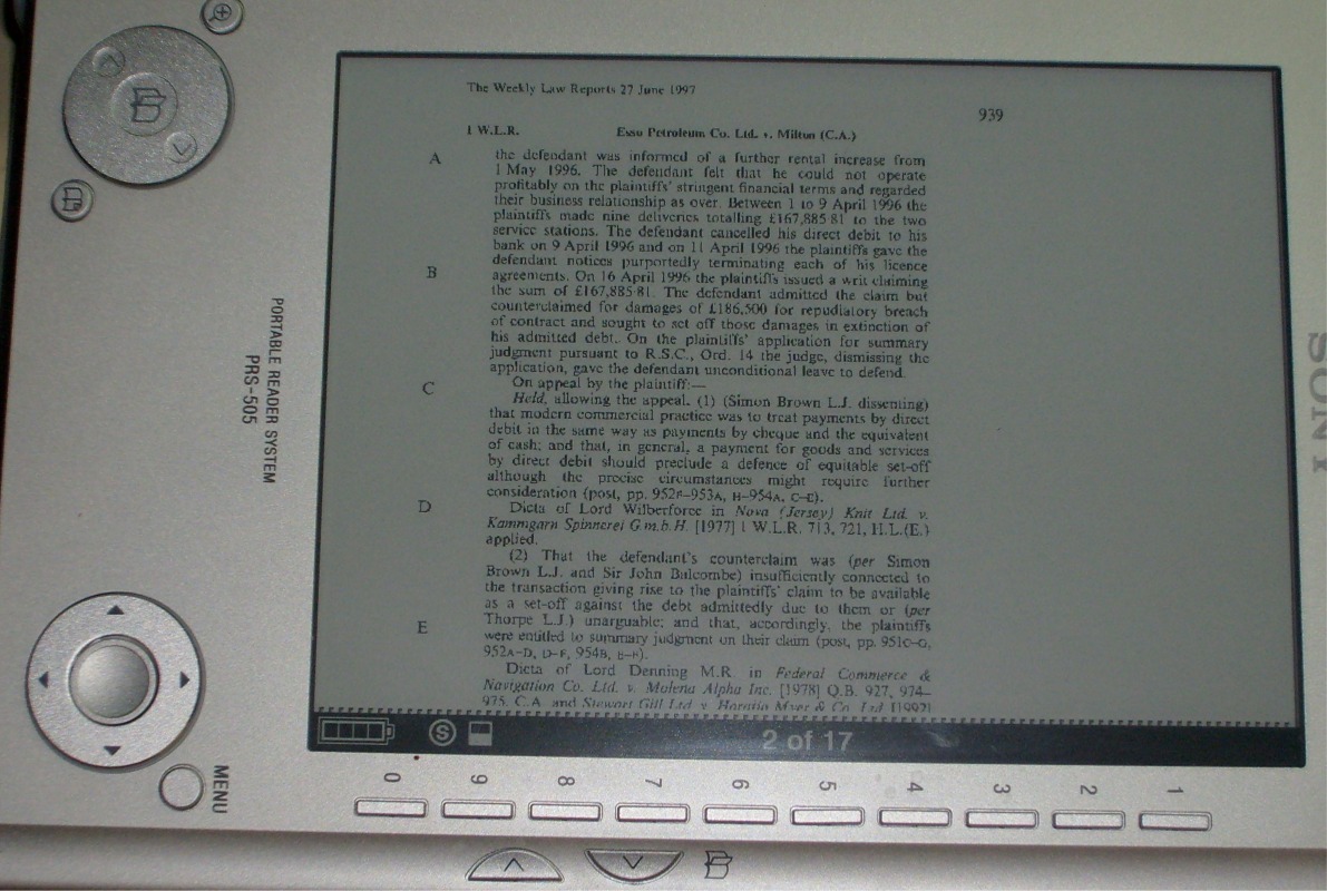Hi I am a new user here and am inquiring as to the suitability of the 505 for reading law reports. I am a law student and am looking for an alternative to photocopying material that i'd read once or twice and dispose after.