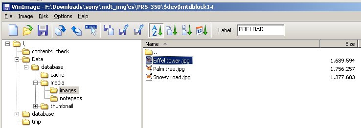 you can extract this internal dev/blocks with "ebook_msc.exe". This file is e.g. included in the boroda/porkupan russification pack over at the-ebook.org Block #14 is a VAT image, so you will need a disk-image-viewer (like winimage.exe) Or, if your books are still backuped, do a hard-reset,or just copy the files from imageshack (it's up to you to resize and greyscale them) |