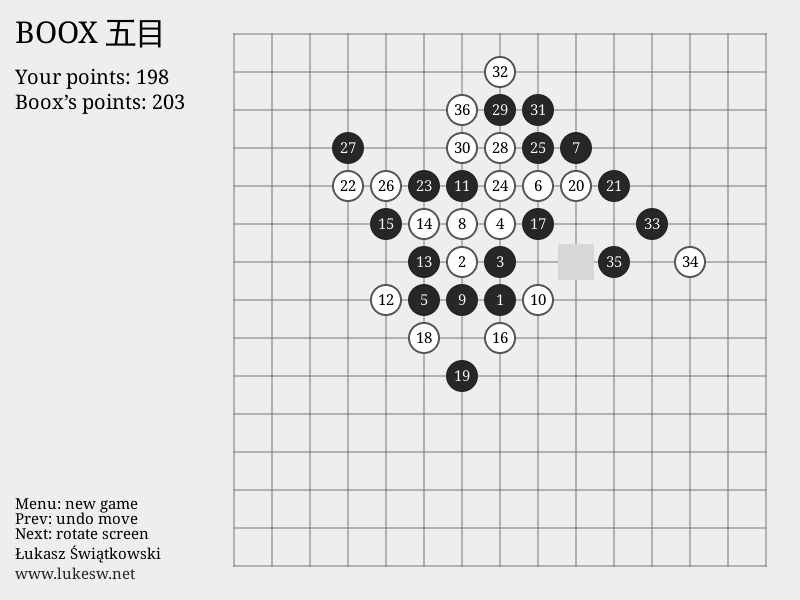 ![]() I developed a Gomoku game for Boox. It works with international and Polish firmware (v1.5.1). It does not require stylus (but can use it) so it works also on Boox (X)60S. |