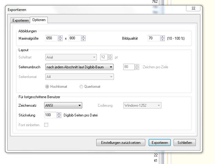 Habe den Export nach epub jetzt verschiedentlich durchgeführt: ganz hervorragend mit diversen Einstellmöglichkeiten (siehe Grafik). Es werden z.B. Inhaltsverzeichnisse und Verweise komplett übernommen. Auch wird die Textstruktur z.B. bei Reimen und gedicht gewahrt.