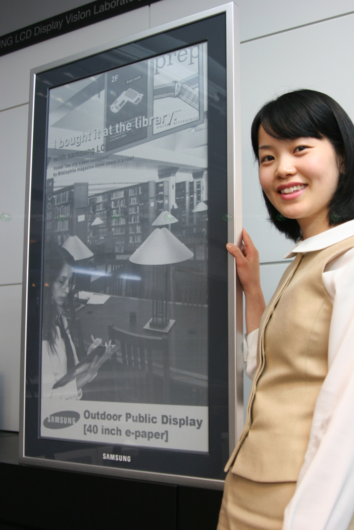 akihabaranews writes: "Additionally, IMID 2007 visitors will see Samsung’s 14.3-inch (A-4 paper size) plastic color e-Paper and 40-inch black-and-white e-Paper, two other promising state-of-the-art technologies." A little big for a ebook.