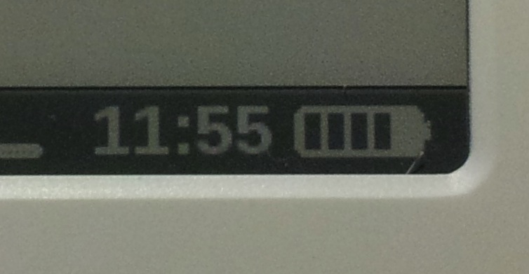 wenn nur noch der schwarze rahmen zu sehen ist, wird es zeit den akku wieder zu laden Akku voll ┌─────┐ │█ █ █ █ └─────┘ Akku leer ┌─────┐ └─────┘ |