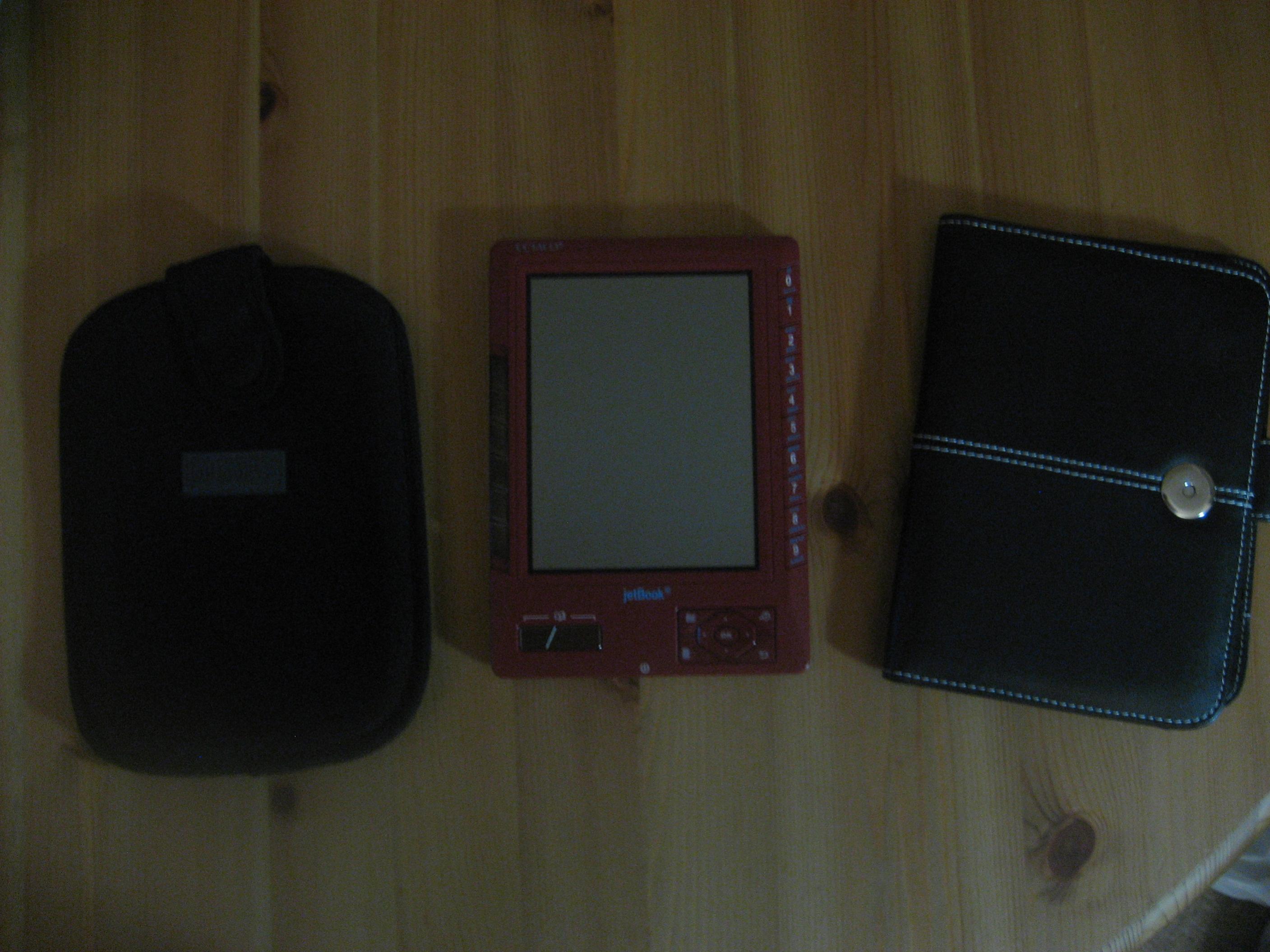 I have found True Love with my Nook Color, and decided to sell off my other gadgets that are gathering dust. This burgundy Jetbook (classic, not lite) is barely used and in perfect condition. It comes in the original box, with the original slip case, a leather case (modified from a Sony ereader case), and the original wall charger and double-headed USB charger--still in the original packaging. With upgraded software, the Jetbook can handle B&N DRMed ebooks (I know this because I tried it). Shipping is included to the continental U.S. only. Paypal only, please. Last edited by MaggieScratch; 11-03-2011 at 12:54 PM. Reason: Price reduction |
