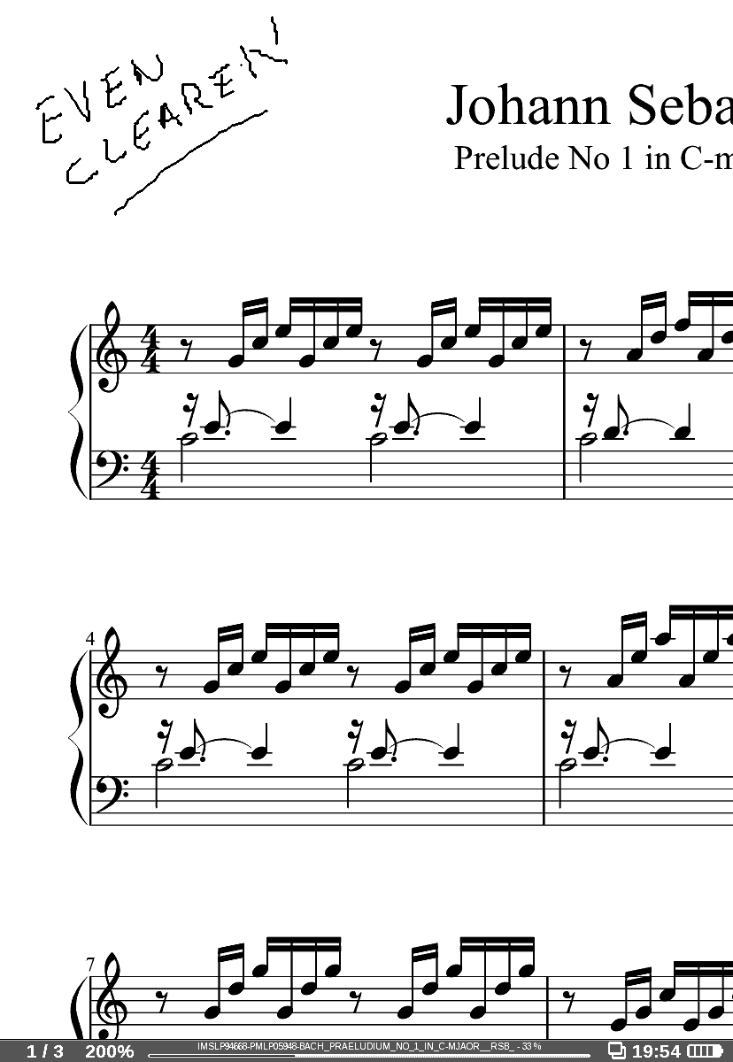I'm really curious, how well the Pocketbook 902/903 displays sheet music. In this I see a great use for me (as a hobby musician), since so many scores are available for free today from pages like imslp.org. Would somebody please download these scores, upload them to his/her Pocketbook 902/903 and report back here about how well the notes are displayed (maybe by making a screenshot, i.e. a photo of the screen) and how fast page turns perform: http://imslp.org/wiki/Special:ImagefromIndex/94668 (kind of native scores in pdf format) http://imslp.org/wiki/Special:ImagefromIndex/01005 (scan) Both versions are most interesting. The first one might be quite hard to render. The second one is a scan and might suffer from slow page turns and bad contrast. As most free sheet music is available in one of these formats, it would be nice to have at least one of them working smoothly ![]() Thanks very much in advance! Last edited by tuxor; 10-04-2011 at 08:18 PM. |