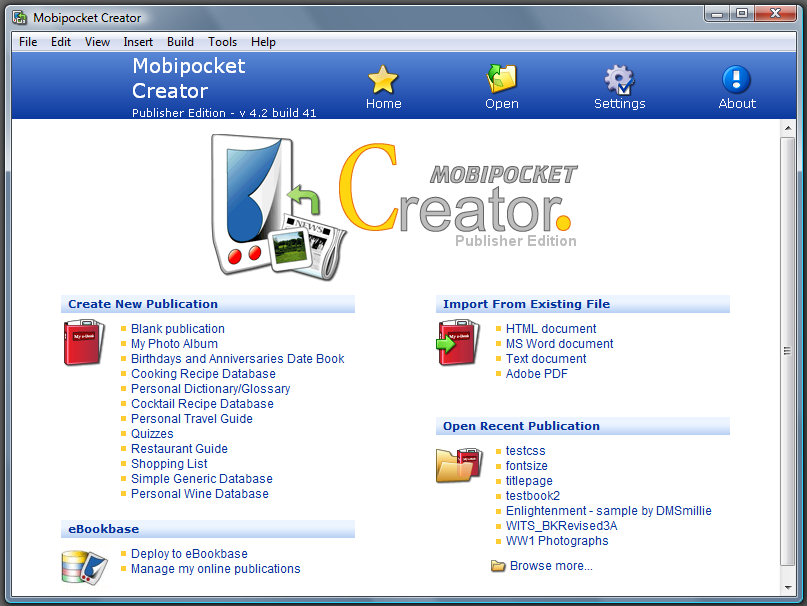 I run windows 7 x64 I am trying to use mobipocket creator without success. I can't give you much info other than that because the program does nothing at all. I have never seen the program function so I do not know if it is supposed to look like it does in the screen shot or not. the program opens as you can see, but that's all it does