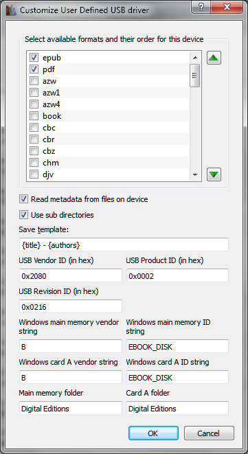 Do these completely define the device interface? IOW - is every device interface plugin just a set of these parameters? The nook app for android is diffrent from the native nook app on the nook color, so I need to define the directory. I can do it via 'connect to folder' as well as via the User Defined device plugin. Secondly, where does calibre look for cover photos? After I load a book, and check the device view, I do see the metadata, but not the cover. Does calibre load the cover separately, or is it embedded in the .epub? I believe the latter, and the reader app then pulls it ou and stores it some place where *IT* likes it. Can I tell calibre where that is so the device view shows the covers? -- Regards, Rich |