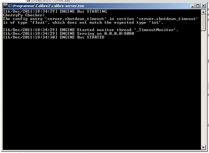 Now i started calibre-server.exe with --develop and got the message you can see at the file attached. If i start the server.exe at our laptop (lan-cable) with the path --with-library z:\BUCH\CALIBRE, i can download the newspapers from my PC. hopefully that help is possible Klaus |