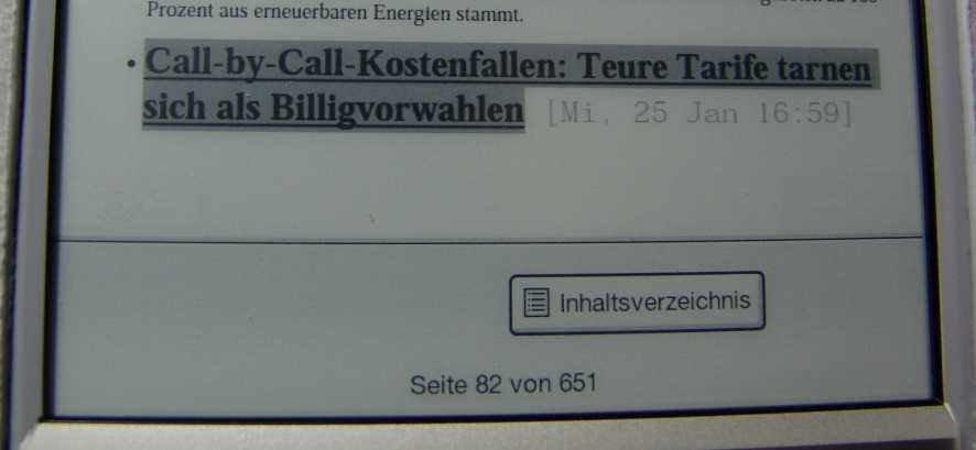 If you read Periodikas on the PRS T1, you always have the link "Inhaltsverzeichnis" at the bottom of the display (see picture).