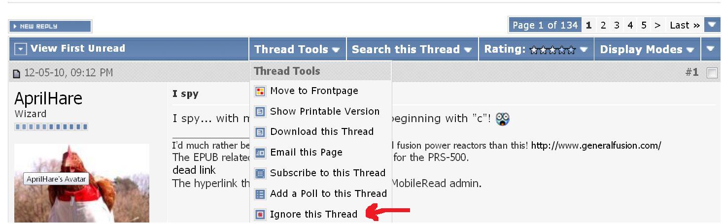 Just go to each thread you wish to ignore Click on "Thread Tools" In the dropdown menu, choose "Ignore this thread" Done. ![]() Repeat for each thread you wish to ignore. |
