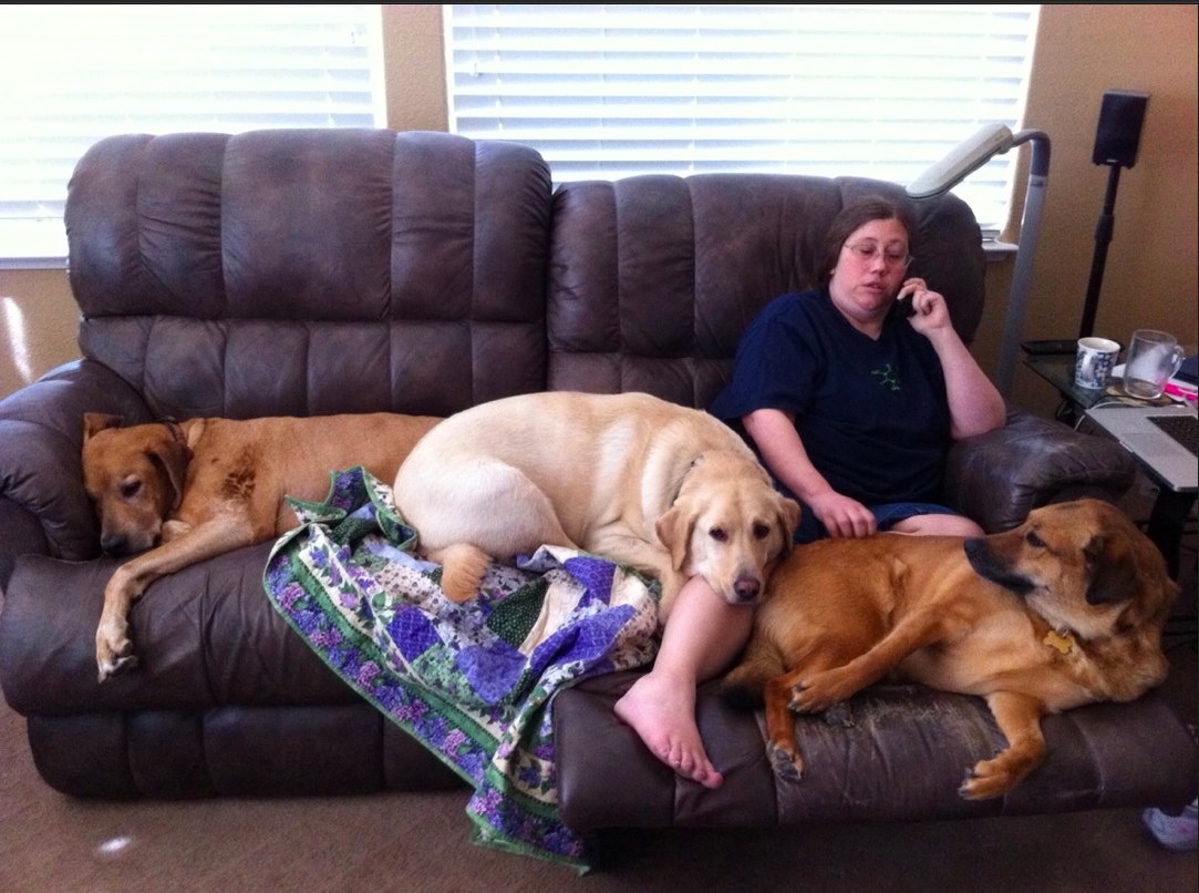 For as long as I have known him, my husband has loved dogs, and wanted a dog. I'm a cat person, so I'm against dogs by nature. They're too clingy, too demanding, and too much effort... cats are less work, but as big a reward. It's to his credit that he indulged my demands for cats while suffering without a dog, but after the second one finally was friends with the first cat, he demanded his due. Our next pet would be a dog. I agreed, since he'd allowed me to have my two cats, and a few months later, we adopted a black lab puppy.