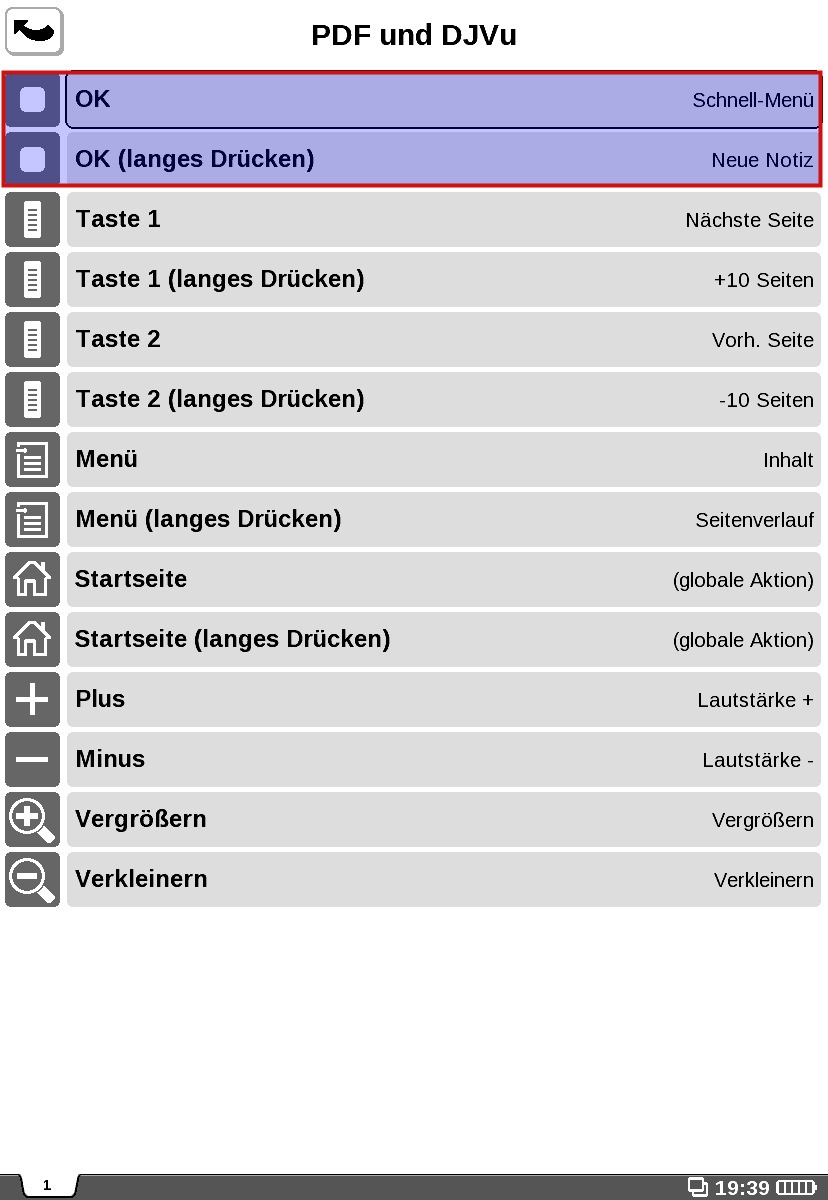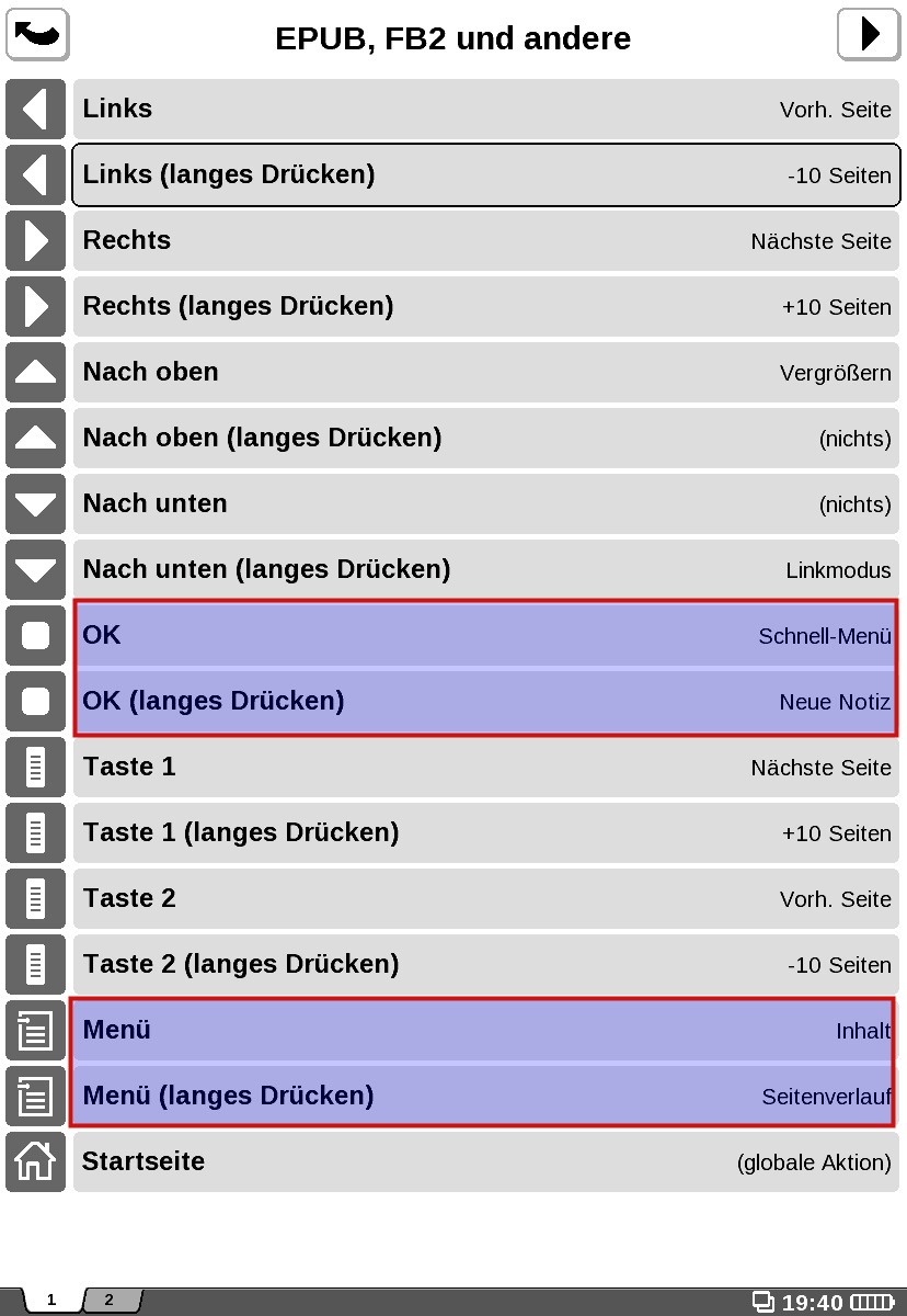 [Update Feb. 2012] USB Winkelstecker [Update] TTS [Update] SSH Verbindung mit Wlan [Update] Poterm [Update] Youtube Video [Update] PDF [Update] Sehr gutes, externes Video von der büchereule: Testbericht: E-Reader PocketBook Pro 912 [Update] DIY Buchstütze für Reader / Cover aus Klettbändern (eng) Hallo zusammen, einen ersten Eindruck über den 912 Pro hatte ich ja hier in diesem Thread schon gegeben. Firmware: Nach der Rumspielphase war ich von der Performance beim Umblättern nicht ganz so begeistert. Ich habe mich daher kurzerhand dazu entschlossen, die Firmware 2.1.2 vom 19.12.2011 mit schnellem Displaytreiber zu installieren. Die Geschwindigkeit beim Bildaufbau (Umblättern) ist deutlich besser. Bisher gab es keine Abstürze. [Update Feb. 2012] Fazit nach 2 Monaten Benutzung und FW 2.2.1 alpha Tastenbelegung: Da ich ein Tastenmensch bin und den Stylus nur verwenden möchte, wenn unbedingt nötig, habe ich die Tastenzuordnungen etwas geändert (siehe Bilder)! Die Standardbelegung hat hauptsächlich zwei Haken: Erstens wird das Multitasking des Geräts besser ersichtlich, wenn die "Home"-Taste mit dem "Taskmanager" belegt wird (siehe Screenshot in der Anlage, hier mit Benutzerprofilen). Hier sind wirklich alle Funktionen zentral verfügbar. Das Gefummel mit dem Stylus, um das Minisymbol in der Statusleiste am unteren Rand des Displays zu treffen (geht übrigens auch nur im Hochformat) ist eine Usability-Zumutung Durch langes drücken der "Zurück"-Taste wechsele ich schnell den Task, man könnte diese Taste aber auch so belegen, dass ein Task (Anwendung) beendet wird.Zweitens sollte der Hauptschalter (oben rechts am Gehäuse) wirklich nur bei längerem Drücken eine Funktion haben, die Belegung mit der Tastensperre (einmaliges Drücken) hat mich bald zum Wahnsinn getrieben Das Gerät war teilweise nicht bedienbar und musste sogar resettet werden. Ich habe diese Funktion nun auf "2-mal Drücken" gelegt und seitdem funktioniert alles reibungslos.Drittens nutze ich das Schnellmenü und die Notizfunktion sehr häufig und habe sie daher auf den OK Button gelegt. Dies alles funktioniert sehr reibungslos und schnell. Externe Programme: Calibre erkennt die SD-Karte des Readers nicht - schade. Er wird zudem als PB 602 erkannt. Über den Dateimanager in Ubuntu (Nautilus) klappt die Erkennung als USB-Gerät wunderbar. Selbst Dateien mit über 60MB werden problemlos (aber mit Warnung) dargestellt. Keine Probleme. Auch die "Reflow"-Funktion arbeitet zuverlässig und korrekt. [Update] In meinem Wiki habe ich einen englischsprachigen Artikel zur Dokumentenkonvertierung (u.a. auch PDF) verfasst. Bluetooth: Funktioniert in beide Richtungen wunderbar. Ich arbeite unter Ubuntu 11.10 und kann mit dem Bluetoothmanager problemlos Dateien versenden. Auch vom Gerät aus geht das. Es wäre schön, einen "default"-Wert für das Bluetooth-Verzeichnis angeben zu können, in das Dateien gespeichert werden. Das Versenden mit BT 2.0 geht ungefähr mit 24 KB/s ... uhhh das ist nicht schnell ![]() Wlan/Browser: Der Browser unterstützt leider kein Javascript, so dass manche Seitenfunktionalitäten nicht genutzt werden können. Die Geschwindigkeit ist - gelinde gesagt - eine echte Geduldsprobe. Aber gut, es handelt sich ja um experimentelle Software. Das wird sicher noch. Langes Drücken der Verkleinern-Taste habe ich übrigens mit dem Trennen der Netzwerkverbindung belegt ![]() Zugang zum Dateisystem: Der Anschluss über USB ist völlig problemlos. Ich habe mir jedoch gerade ein abgewinkeltes Kabel via Ebxx bestellt (sucht mal nach "90 Grad micro usb b left"). Ich hoffe, dadurch wird der "verkabelte" Betrieb zusammen mit dem Tuff-Luv Cover etwas besser. [Update] Ich konnte die SSH-Verbindung endlich mit sshd herstellen . Damit ist es unter Linux / Mac von Haus aus, unter Windows mit Win-Scp problemlos möglich, Dateien zu übertragen. Die Geschwindigkeit liegt ca. bei 500-700 KB/s. So ist der Zugang nicht nur drahtlos möglich, das Gerät bleibt vor allen Dingen während der Dateiübertragung bedienbar, was viel wichtiger ist, finde ich. Die Aktualisierung der Anzeige, d.h. bis die übertragene Datei in der Bibliotheksansicht sichbar ist, kann allerdings etwas dauern. Werden apps übertragen, muss man die App-Ansicht schliessen und wieder öffnen. [Update] Poterm: Neben dem Zugang über SSH ist auch direkt auf dem Gerät ein Zugang im Terminal möglich: nach langem Suchen habe ich die Quellen und eine fertige app für die pro-Modelle hier gefunden (ganz am Ende der Seite). Die in diesem Link und auf dieser Seite verlinkte Version lief nicht. Ich habe es leider noch nicht geschafft, mich als user "root" anzumelden. Bibliothek: Den Dateimanager finde ich sehr praktisch. Die Listenansicht mit Anzeige der Dateigröße sehr gelungen. Was fehlt, ist eine Linksicht, wie etwa im Nautilus von Gnome, um schnell mal auf mehrere Ebenen zu überspringen. Was ich absolut nicht verstehe ist, die Daueranzeige von "Daten werden aktualisiert" über der Statusleiste. Das dauert bei großen Karten mit vielen Dateien (habe auch einige gespiegelte Webseiten) sehr lange. Aber gut. Speicherkarte: Verwende eine Sandisk 16Gb Class 4. Im Moment ein guter Kompromiss zwischen Qualität/Geschwindigkeit/Preis (8 oder 32GB Karten sind im Vergleich teurer). Etwas schneller geht das Kopieren mit einem kleinen USB-2.0 Leser. Der Bart-Stuff-Test (läuft auch mit Wine unter Linux) sagt folgendes: PC -> via USB-Kabel auf Karte im EReader: Write 96 MB/s Read 220 MB/s PC -> direkt auf Karte im USB-Kartenleser: Write 107 MB/s Read 235 MB/s Entwickeln: Das SDK (Version 1.1 für Linux!) habe ich mir auch mal installiert (sowohl die Debian Version als auch die Originale). Dann den Links-Browser mal testweise kompiliert. Ging problemlos. Für versierte Linuxer bzw. Programmierer/Informatiker sollte das kein Problem darstellen. Ich bin sehr zufrieden mit den Möglichkeiten. Vergleichbar mit dem Android-Framework ist das Ganze zwar nicht, aber ich hoffe, das P