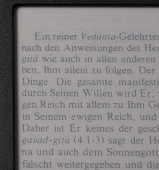Habe ein PDF, dessen Schriftfarbe auf grau gesetzt ist, was auf dem Reader aber leider sehr leseunfreundlich blass erscheint (siehe Bild unten). Bisher habe ich lediglich herausgefunden, dass man die Schriftfarbe für die Darstellung am Monitor über Bearbeiten - Voreinstellungen - Ein-/Ausgabehilfe umstellen kann, was auch bei dem kostenlosen Acrobat Reader funktioniert. Um die Darstellung auf dem (Ebook)Reader zu verbessern, muß die Schriftfarbe aber im Dokument selbst verändert werden. Seitenweise bekomme ich das auch hin (über Eigenschaften - Text - Füllfarbe) aber bei knapp 1000 Seiten ist das einfach zu aufwendig. Das muß doch auch einfacher gehen. In den Preflight-Menüs hab ich auch schon viel Zeit verbracht, aber für eben dieses Problem nichts gefunden. Kennt jemand den Trick? |
