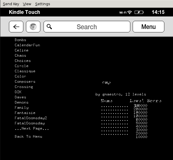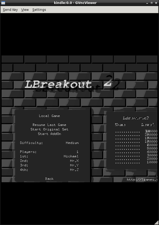 Home, Searchbar, Blank background. (searchbar) [root@kindle root]# xdotool windowminimize 0xe00033 (titlebar) [root@kindle /dev]# xdotool windowminimize 0xe0004a (home) [root@kindle /dev]# xdotool windowminimize 0x1000024 (blank background) [root@kindle /dev]# xdotool windowminimize 0xe00003 and then restore them again [root@kindle root]# xdotool windowactivate 0xe00033 etc.. simple. That way all the nice TSLIB events get piped to the "topmost app" - which is ours ![]() I am currently playing breakout on my kindle 5 : ) YAY with a working TS interface Joy