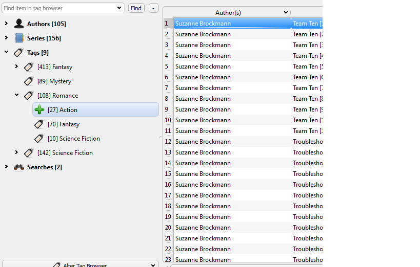 Have uploaded a clip of my tags column Just to confirm we are talking about the same thind Not another column you have added? All mine as you can see are left with the tage that came when I added the book As I seem to have 1710 books in Calibre now and maybe a similar amount to sort out and add later I really need to tag them better As I cant find anything.