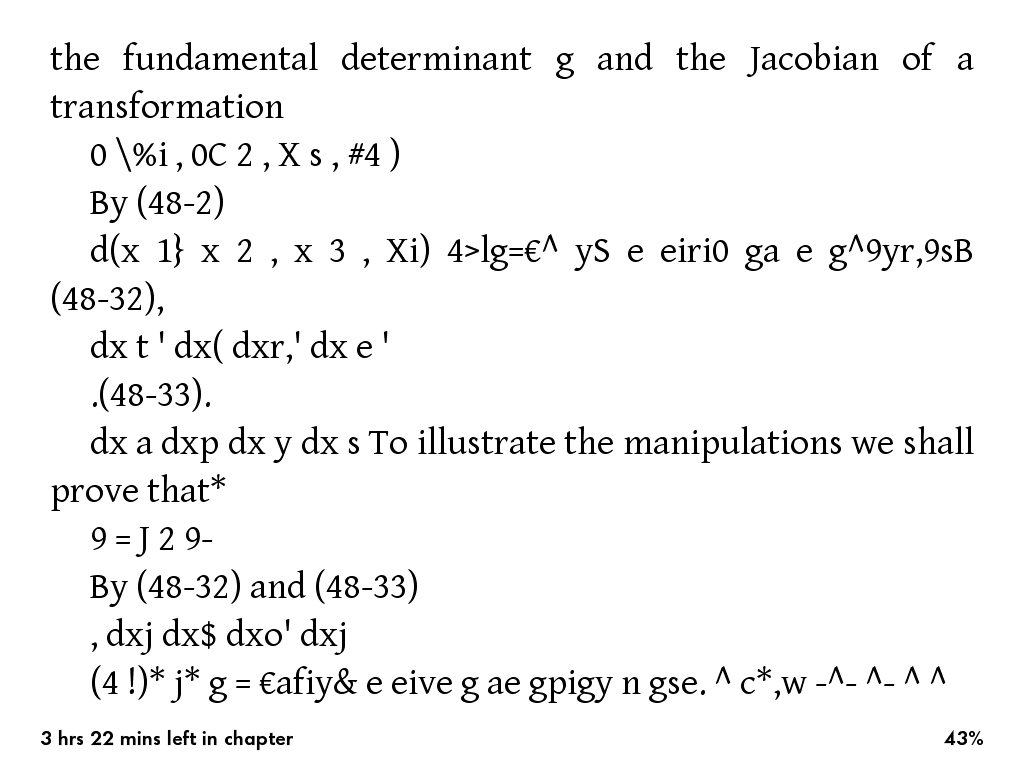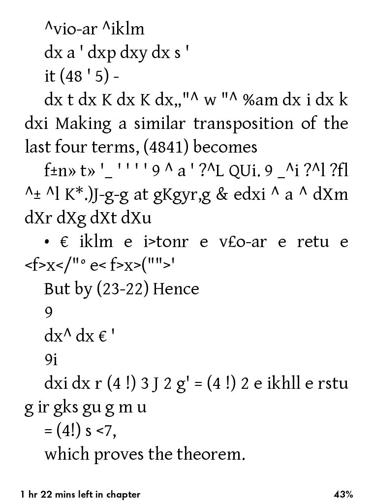Before I buy a KPW I want to know how the files I'm gonna read look like. Today I found this .mobi version of the book. Can someone please show me how a couple of pages of the attached book looks like in KPW (landscape mode too if possible). It would be great if the pages contained some equations too.