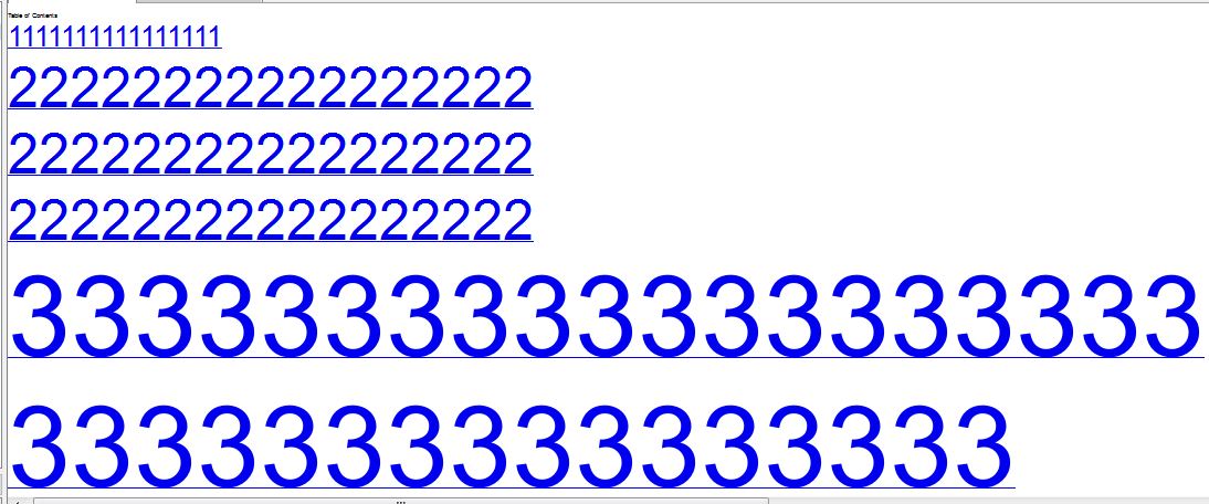The TOC uses nested (level Divs) Level 2 is inside a Level 1. I tried a -1em NOT ALLOWEDKeeping the nests straight IN THE CODE seemed beyond me (and would not survive a regen of the TOC). This way survives as Sigil will not replace an existing stylesheet DaleDe's method is not the default Sigil (Generate HTML TOC) way |