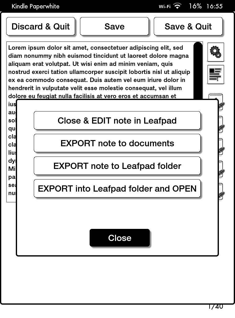 KindleNotes - A friendly note app for Paperwhite (1 & 2) and Touch