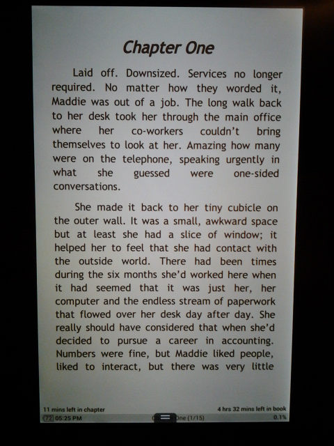 By better contrast, I mean the whites are white and the blacks are black! Plus of course you can change to off white or whatever color scheme suits your fancy, if you use additional reading apps. Last edited by booklover6; 12-11-2013 at 10:36 AM. |