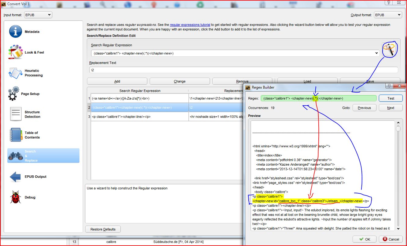 ![]() btw I wonder, is Calibre the best tool to convert books? And, I wonder as well, it does not exist tools to edit mobi files, so I have to create an ePub file before, right? Oh and if I follow your tutorial, I end up with chapters but then the chapters are displayed as html code : <p class="calibre1">Jetsam</p> This is not very good, I mean... I would like to have a given class for chapters so I can decide how I want them to be displayed. And if possible I would like to keep the <hr> so to have an horizontal line after the chapter name. I guess this is all about fine tuning the convert thing... Last edited by Julien Pham; 04-04-2014 at 10:41 AM. |