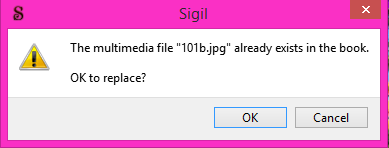 Hi, I would like to request a feature on a Sigil  future release: When we import dozens of (already existing) images into an epub, would it be possible to have a "Yes / OK to all" checkbox in order to avoid clicking "OK" to the "OK to replace?" question dozens of time (for each and every image)? We have published epubs with lots of images and sometimes need to optimize many of them (already present in the epub) and it is really time-and-nerves-consuming  . Merci beaucoup if it is possible :-) Kind regards, Olivier Rebiere |