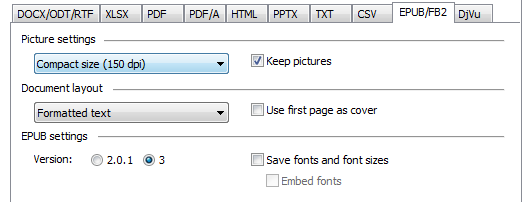 On this dialog, whenever I change any of the settings, if I go back to the dialog they've all been reverted to the default (and the defaults is that of reducing images to 150 DPI). That the EPUB is not assuming the higher quality image settings is apparent in the saved file. Now, if I change that option of EPUB version 2.0.1/EPUB v. 3.0, that sticks. If I revisit the dialog, the last thing I had chnaged it to is still set.