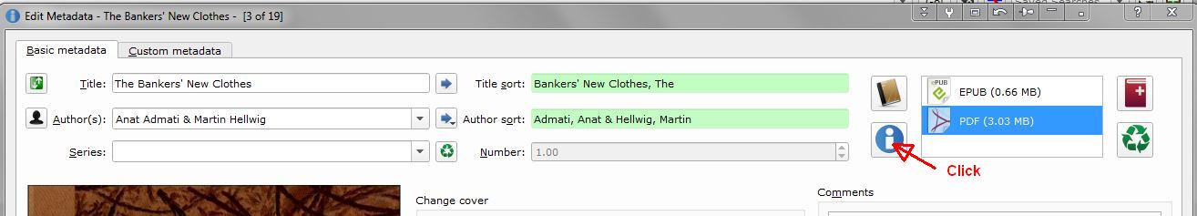 I'm editing PDF and epub outside calibre. When one epub or PDF is modified I have to delete the old in calibre and import the new one. So I would like that all metadata from the new PDF to be automatically reimported in calibre (tag, author and so on) In epub i write, I use ISBN to store a version number this way the ISBN from my epub is recognized in calibre. And it works. Is there a solution for calibre to do the same as there is no official metadata for ISBN in PDF ? I'm missing a documentation on how calibre import metadata from PDF in calibre. And on internet everyone is interested in calibre to write metadata in PDF from calibre metadata whereas I want to do exactly the opposite: configure the way calibre import metadata from a PDF... Am I more understandable ? Regards |