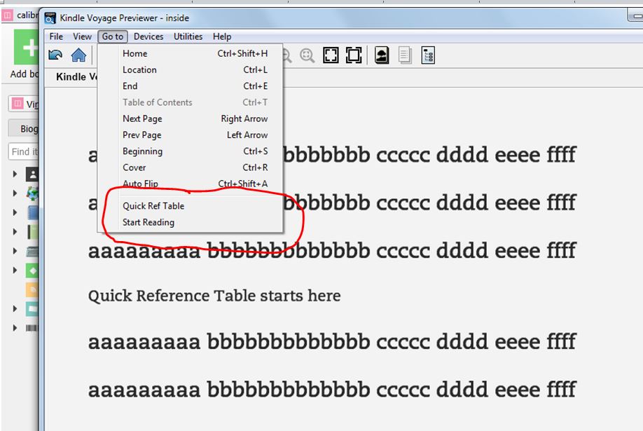 <reference type="other.quickref" href="text/part0001.html#Table_of_Data" title="Quick Ref Table"/> I really prefer to stay in the epub format for editing and convert if required (even if I had to enter type="other. " things manually) It seems to me from my side of the keyboard, that the EPUB-to-AZW3 throws away the type="other" <guide> references. It would be very handy if a. The [Set Semantics] options would allow you to enter type="other.something" b. The conversion process didn't throw such things away Last edited by phossler; 04-09-2015 at 05:10 PM. |