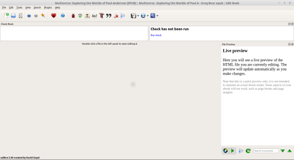 Hi. I recently installed Calibre and at first it worked fine. It opened epubs with three columns, contents on the left, html (I think) in the middle, and clear text on the right. I didn't care about editing, since I had no problem editing my files stored in documents. I wanted only to view the documents that I had uploaded in Lulu and Smashwords.