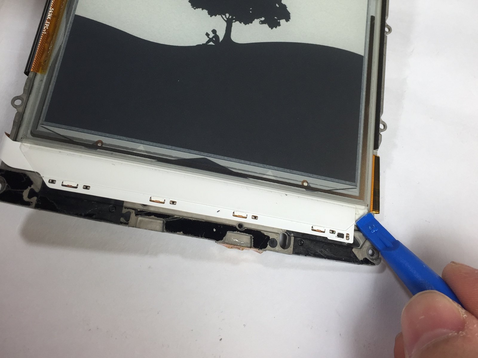 The sensor is on the right side of the Led strip. It is such a tiny black rectangle. Right next to the spatula in the photo. A bit higher than a typical smd resistor. Sometimes it breaks off when the front bezel is not properly disassembled.
