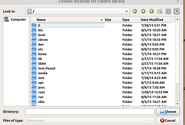 Note: Many (most) file browsers will offer a bookmark to mounted drives, especially when the Desktop Environment-integrated file browser automounted the USB drive. ![]() calibre's builtin file browser is far more barebones though. |
