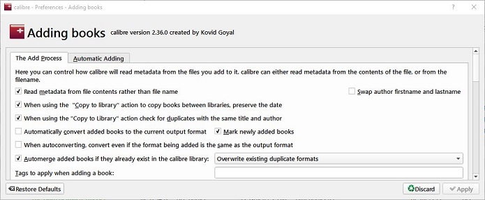 Add books has a safety (of sort) setting (see image) Tweaks also has settings if you use the Copy To Library feature |