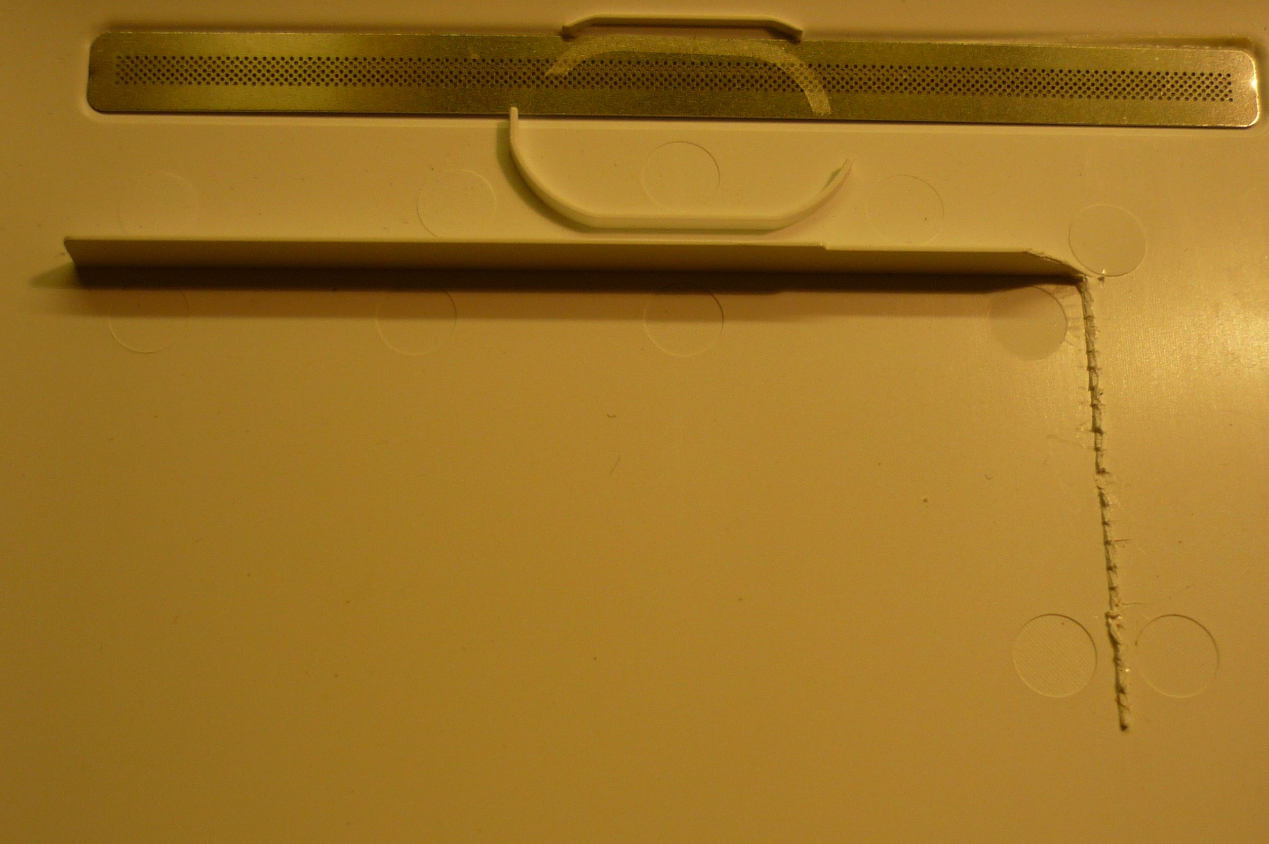 The battery is glued in with glue stripes on top and bottom (the wide sides) of the battery, and the glue was rather strong in my case. What's more, there is a big hole in the metal frame below the battery where the display is unprotected. So if you try to lever out the battery with a screw driver you can easily crack your display in the process if you didn't know about that hole beforehand. So make sure whatever you do to get the battery out, never try to get any leverage from the middle. Only work at the very sides of the battery. I'd suggest you simply pull hard on the cable of the battery itself, except it may break and you become unable to reuse it for your new battery. The following picture is from a Story HD Basic with already cracked display I bought from Ebay for spare parts (I finally fixed my bricked Story HD today, yay). I gave the glue stripes a green tint because they were not easy to see in the image otherwise (sorry for low quality). |